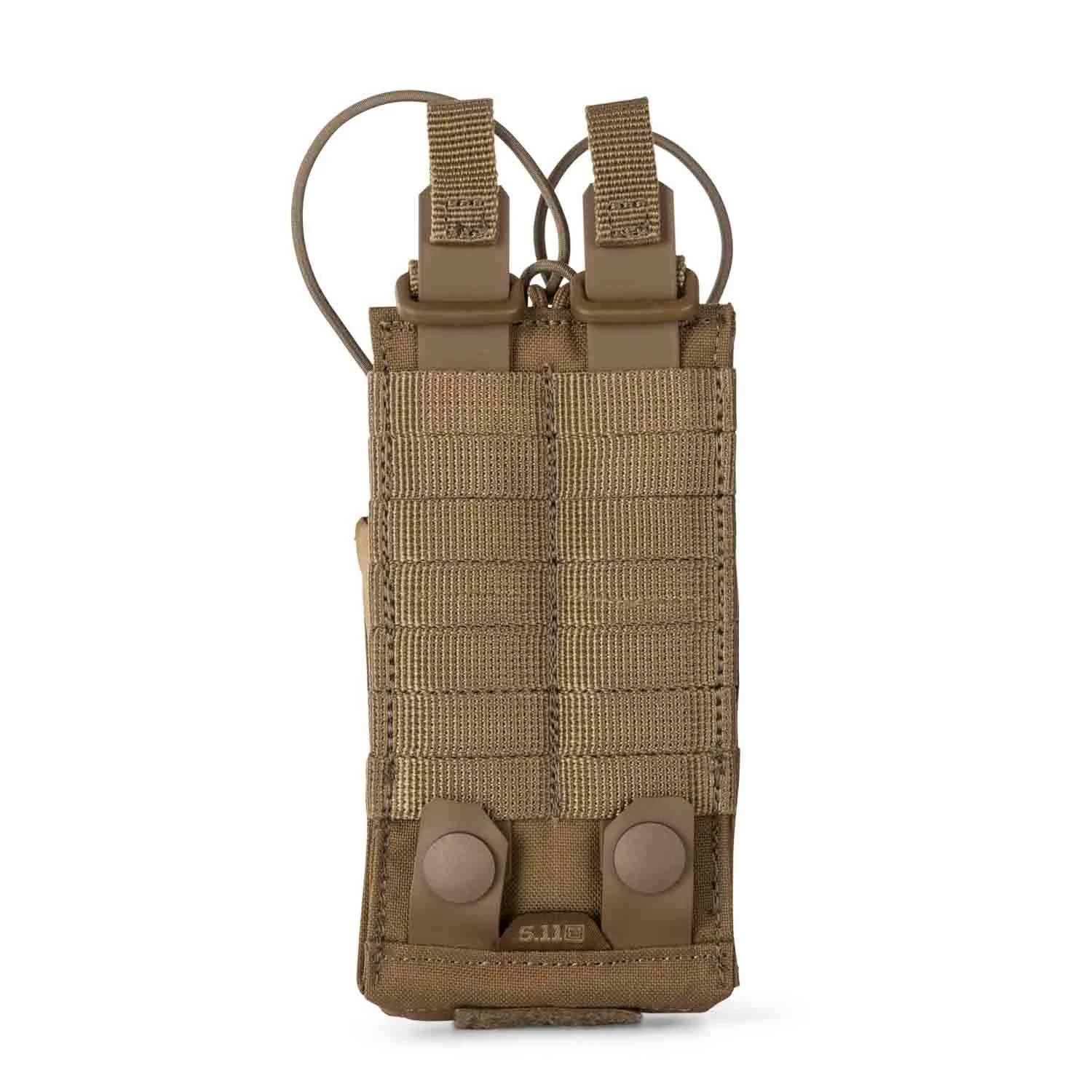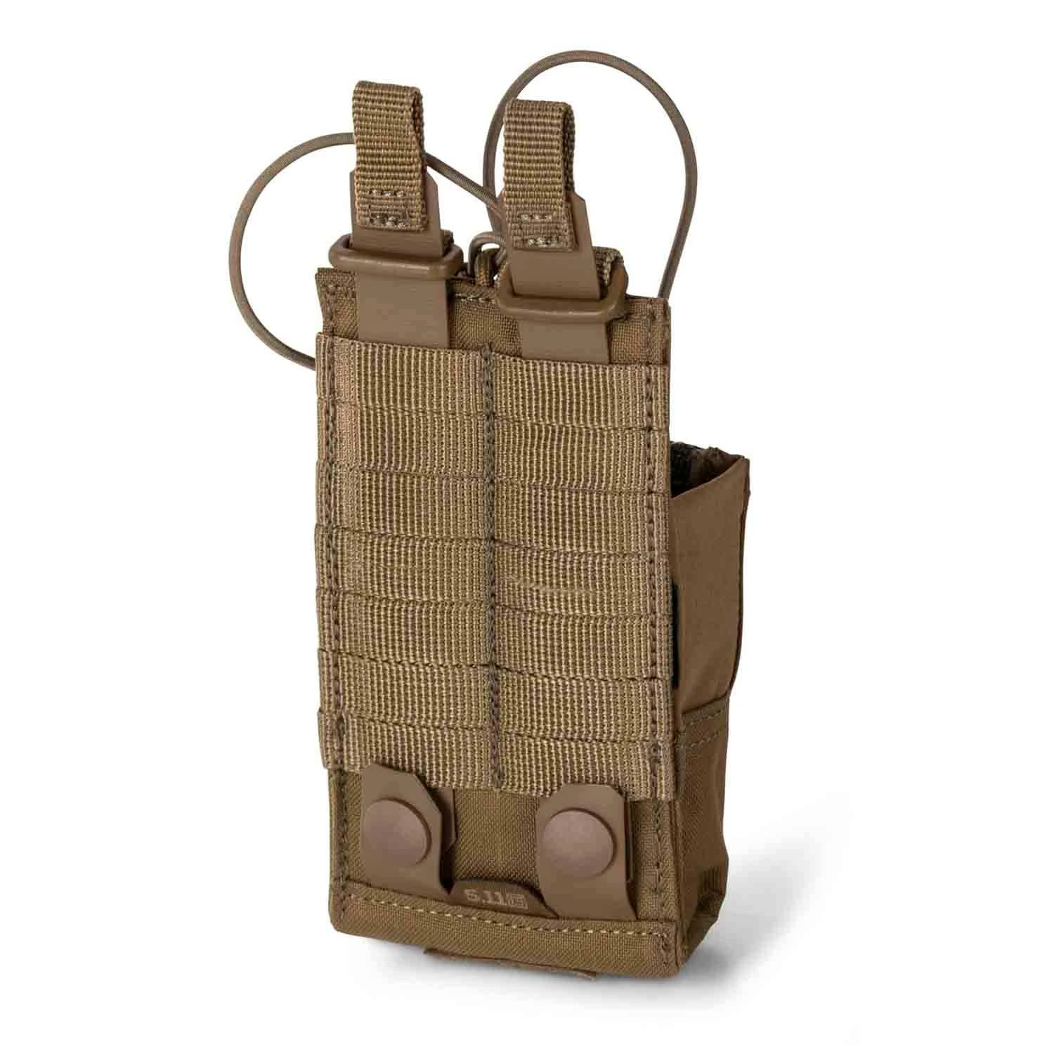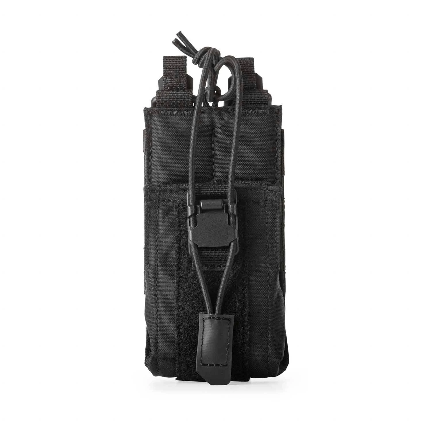 The upgraded 5.11 Flex Radio 2.0 Pouch now includes a magnetic Fidlock® adjuster and 3mm bungee cord with a Hypalon® pull tab for quick access and improved retention. This radio pouch is made from 500D nylon with TPU coated straps to withstand rough use and features internal non-slip webbing to reduce movement and provide additional retention. There are also stretch panels at the sides that expand to fit mic attachments and includes the Flex-HT™ system for mounting versatility.
