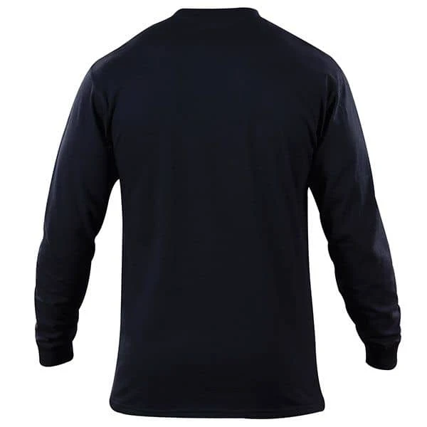 The 5.11 company has built a reputation for producing top-quality gear to support military personnel, law enforcement officers, and firefighters on the job. One of the most popular choices among firefighting professionals worldwide, few tops offer better comfort and durability than the 5.11 Tactical Long Sleeve Station Tee (Fire Navy). This rugged garment from 5.11 features a tapered fit and extended length, ensuring that you stay tucked in all day. Moisture-wicking technology fights wetness while the printed inner label prevents chafing at the back of your neck. The L/S Station Tee is built from jersey knit cotton and can be silkscreen printed or embroidered if desired. A spandex ribbed crewneck provides flexible comfort, and a high-density, no-roll collar means you always look smart and professional. Finally, trust the double-needle stitching for durability that’ll keep this shirt coming back for more.