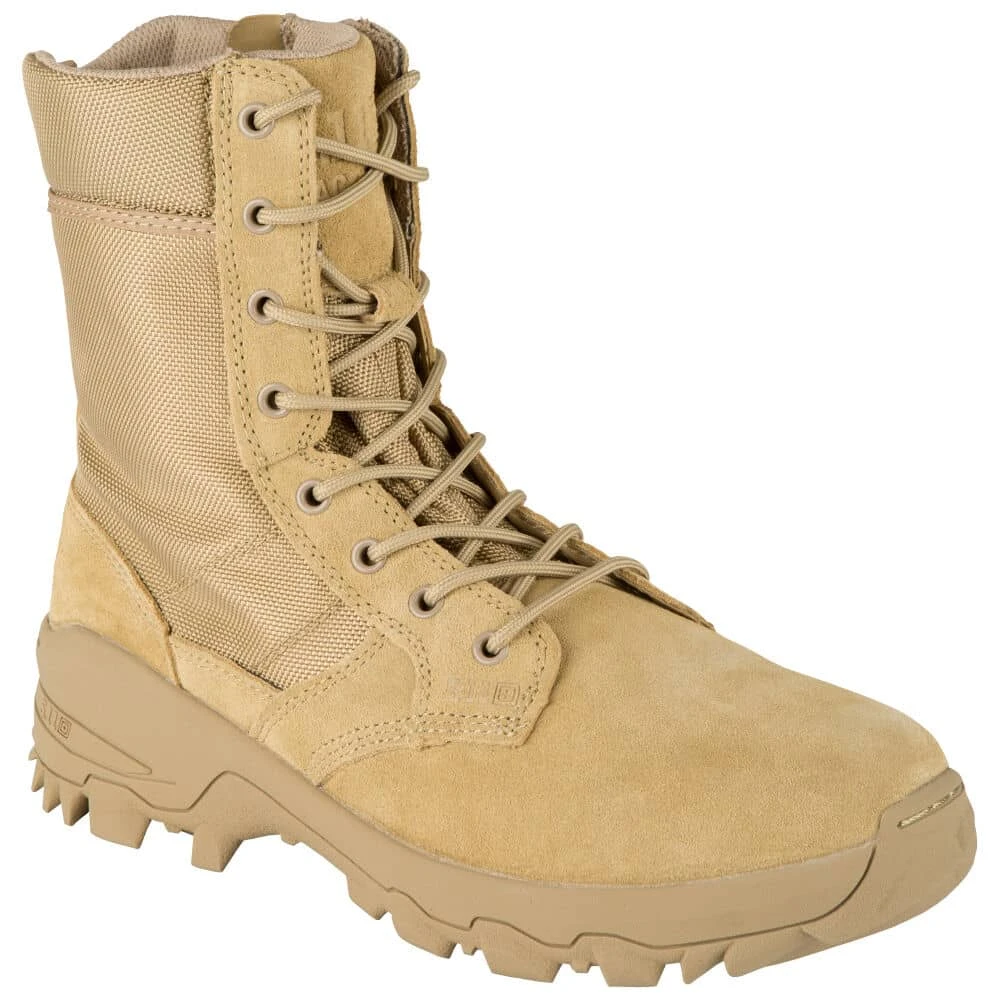 The 5.11 Tactical Speed 3.0 Side zip Boots are an accelerated version of the A.T.A.C. Boot, and are built to handle harsh environments. It features an advanced jungle outsole with forefoot lugs, a fence climbing toe, and delivers comfort and stability with oil and slip resistant tread built for traction in wet conditions and rough terrain. With and anti-microbial treatment and OrthoLite insole, these boots will remain fresh and enhance comfort all day long. The 14mm heel-to-toe drop helps ensure accelerated speed so nothing will slow you down.