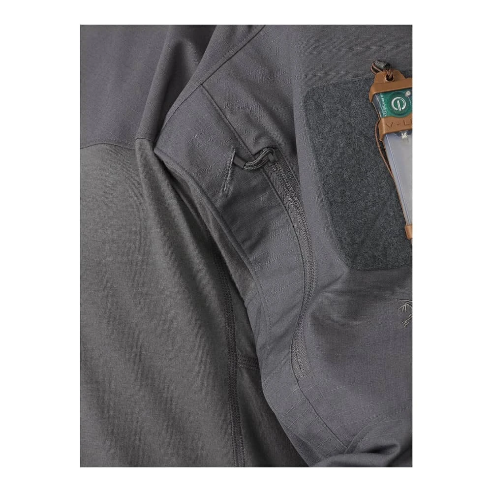 The Arc’teryx LEAF Assault Shirt AR Gen 2 utilizes dual material construction to deliver a PPE and body armor compatible fit that resists heat and abrasion. This tactical shirt has B&O No Melt/No Drip NYCO ripstop shoulders with a quarter zip collar that increases ventilation and significantly reduces donning and doffing time. Lightweight CYBERKNIT J214 NMND NYCO jersey knit keeps you cool and comfortable through long hours in the field. With mission-essential features, such as removable UPF EV50 foam elbow pads (included), zippered bicep pockets, and a VELCRO with V-Lite Retention loop patch panel, this combat shirt is ideal for tactical and military operations.