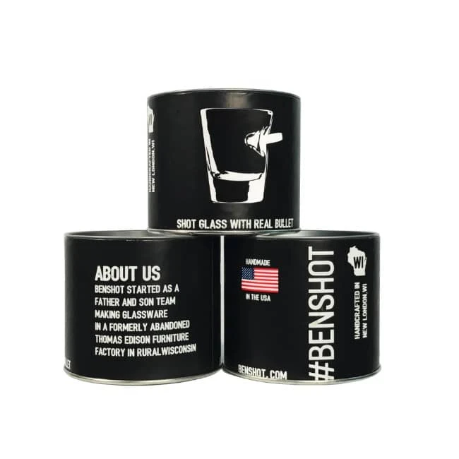 If you’re looking for a handcrafted, unique product, made at home in the USA, then the Ben Shot “Bulletproof” Shot Glass could be the right choice for you. Each piece of glassware is crafted at a repurposed furniture factory in Wisconsin, once owned by Thomas Edison. Each glass is uniquely imbedded with a .308 caliber rifle bullet and is 100% safe for drinking. Pick up one for yourself, or as a gift, and enjoy this high-quality glassware that is sure to become an interesting conversation piece for any setting.
