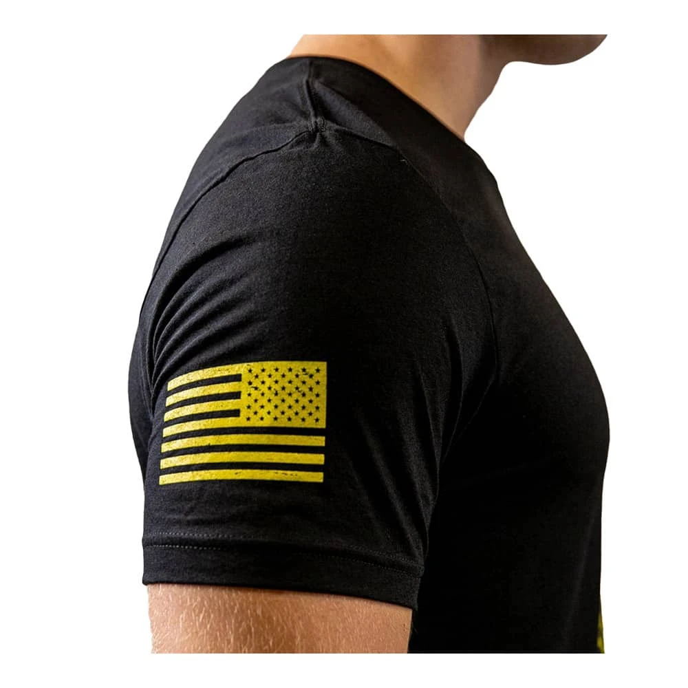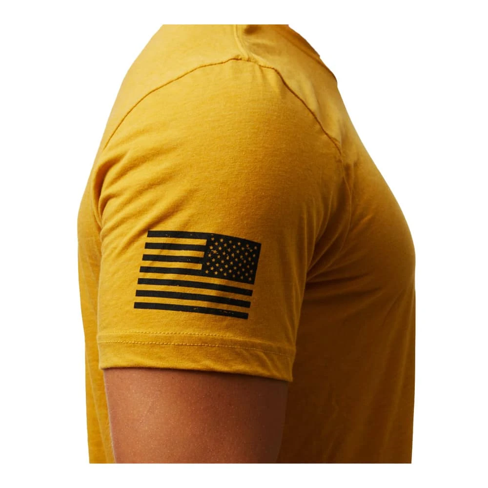 Made from a durable polyester and Airlume cotton blend, this Don’t Tread on Me Gadsden flag t-shirt uses eco-friendly dyes and 7x less water than other fabrics. Side seamed for extra comfort.