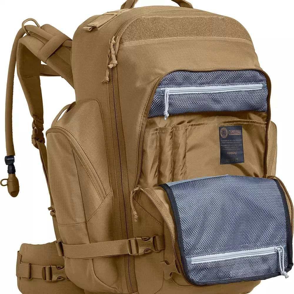 Maximize your storage capacity while simultaneously staying hydrated with the CamelBak BFM™ 100 oz Mil Spec Crux Hydration Pack. This hydration ready tactical rucksack boasts an impressive total capacity of 50-liters that can accommodate up to 47-liters of gear and a 3-liter hydration reservoir. A dedicated insulated reservoir pouch with drainage grommets and multiple exit ports gives you easy access to your water supply. Securely stow your gear, clothing, ammo, and more in the large main compartment with clamshell zipper and internal organization pockets. With an adjustable Futura harness, side release buckles, Mountain MOLLE platforms, and compression straps, this Mil-Spec hydration backpack can handle even the toughest of hauls.