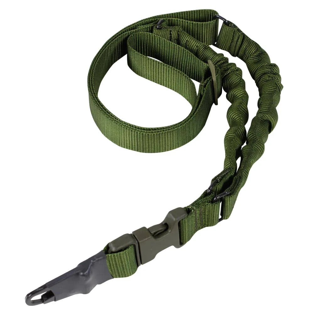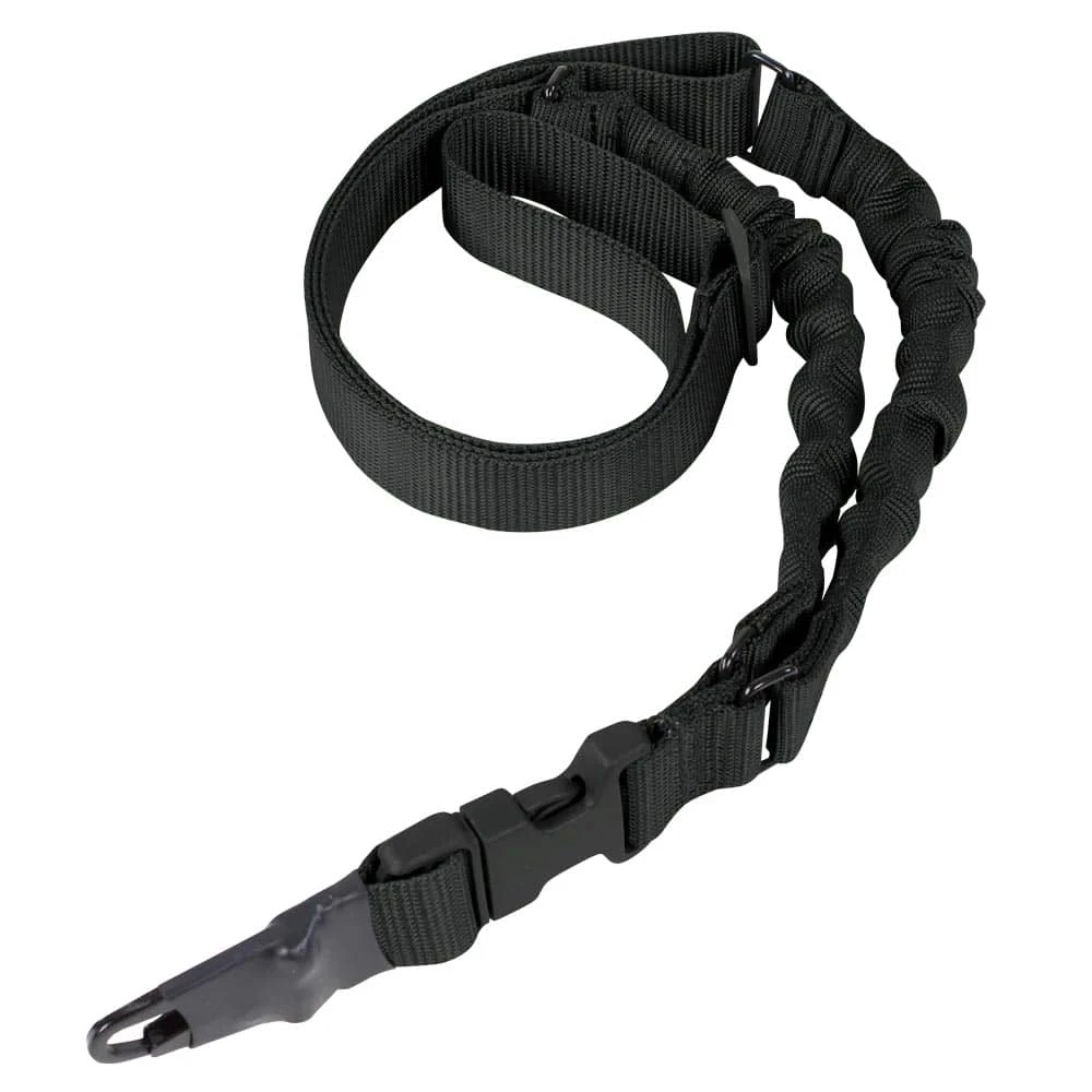 The Condor Adder Dual Bungee One Point Sling is made with a dual high strength 1/2 inch diameter bungee system and durable 1 1/8 inch webbing. For added versatility, it includes two adapters, one HK style snap hook and one webbing style attachment for use with any style weapon.