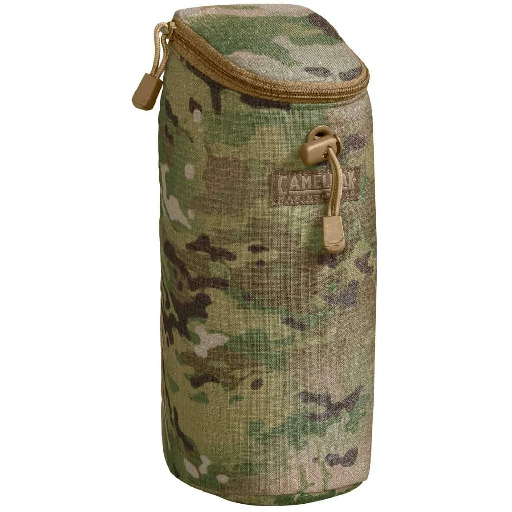 Keep your water battle cold and secure with the CamelBak Max Gear Bottle Pouch. This MOLLE Compatible pouch is fully insulated, has a zipped closure, and can be used to store your water bottle or snacks.