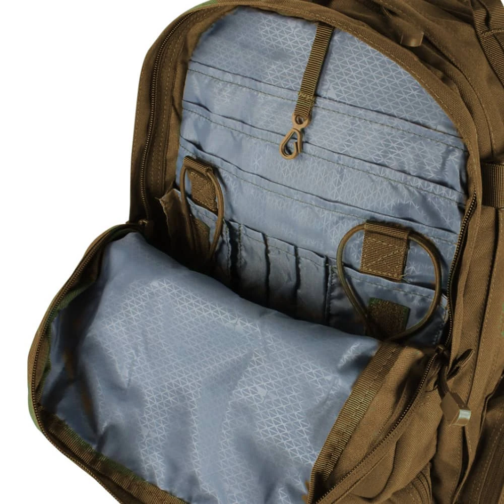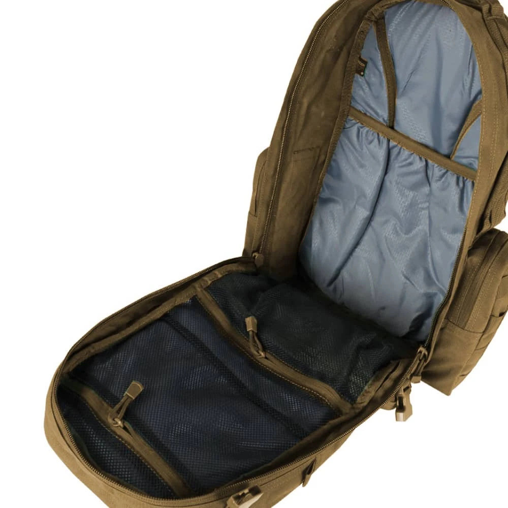 The Condor Convoy Pack has plenty of features to help you out while you are in the field. All of the compartments come with grommets. It comes with compression straps on the side, a sternum strap and a removable waist belt. For increased airflow and reinforcement, the mesh backing is padded. Additionally, if you are interested in applying some modular attachments, you can utilize the heavyweight webbing. Plenty of gear can be stored thanks to the presence of five compartments.