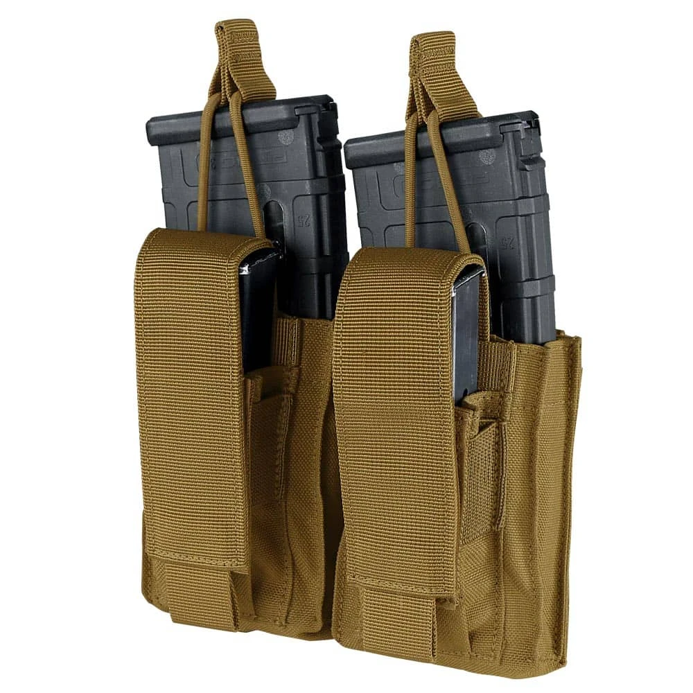 Maximize your storage capacity with the Condor Double M14 Mag Pouch Gen II This compact mag pouch features pull-tab hook and loop flaps and elastic retention that securely accommodates up to four M14 magazines or similarly sized items. This Condor tactical mag pouch is available in Scorpion OCP and other colorways, making it ideal for tactical, military, and law enforcement applications.