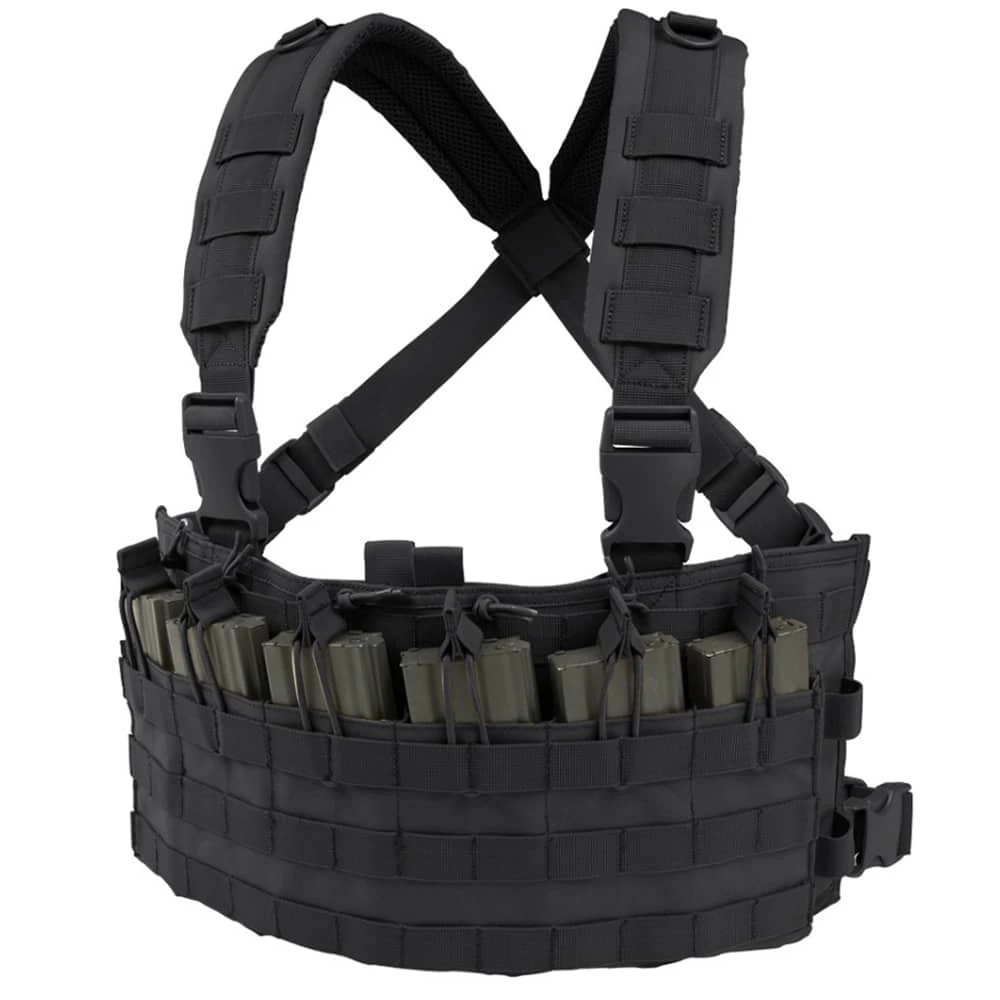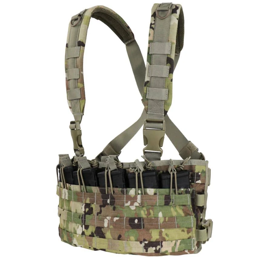 The Condor Rapid Assault Chest Rig allows you to quickly and easily access your spare M4 mags when you need them most. This lightweight chest rig features six open-top M4 mag pouches with bungee retention for lightning fast deployment. Padded crossback shoulder straps provide hours of comfort, while PALS webbing and d-rings enable virtually limitless modular configurations.