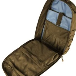 There are five compartments inside this Condor back pack, including a main laptop or tablet sleeve that can handle a device measuring 13″ or 15″ in total. The top front compartment has a main organizer while the bottom front compartment contains mesh pockets for holding peripherals.