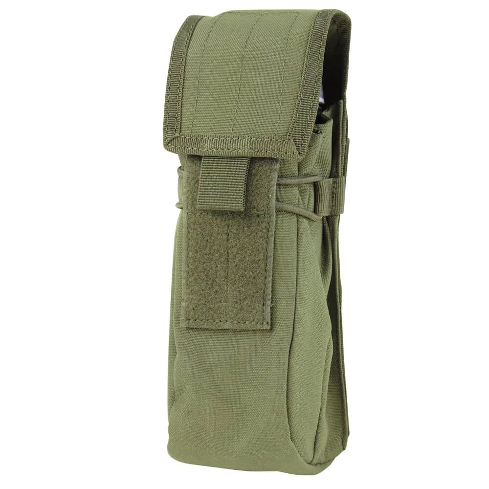The Condor Water Bottle Pouch was designed for anyone who wants to place a plastic water bottle in a pouch. Being MOLLE compatible, this pouch can easily be attached to MOLLE bags or rigs. This unique pouch can easily hold a standard 24oz bottle, with the elastic tension straps you can be sure the bottle is secure and snug in the pouch. This pouch is not only just for water bottles, you can use the pouch as a vertical pouch for anything you could fit in it. The Condor Water Bottle Pouch sports two integrated attachments and a flap lid with a hook and loop closure.