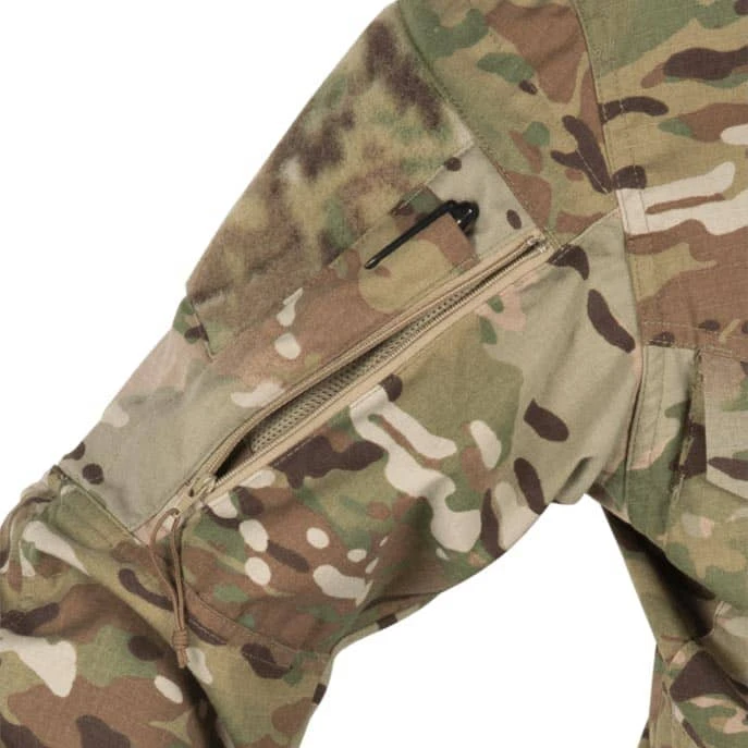 The new generation of field apparel is here with the Crye Precision G4 FR Field Shirt. Made from proprietary High Strength Commando Twill™ this MultiCam shirt meets or exceeds ASTM F1930 compliance for flame resistant. Multiple pockets provide ample room for mission-essential gear, tech, and more. Compatible with AIRFLEX™ IMPACT ELBOW PADS (sold separately), this lightweight hot weather uniform shirt is proudly made in the U.S.A.