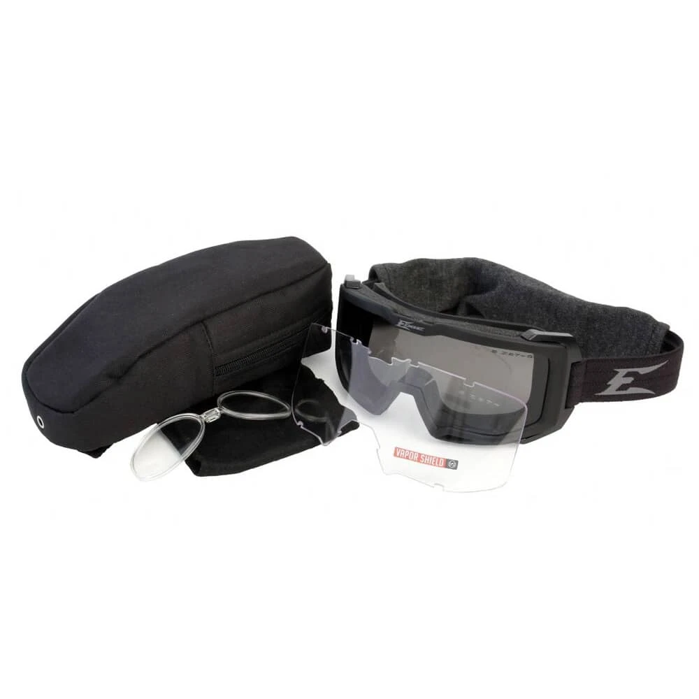 And if things do get real, you can rely on the Edge Eyewear Blizzard Goggles for back-up. Like with all Edge eyewear, this goggle kit meets ANSI Z78.1 and 2010 standards for high mass, high-velocity impact. They also meet the Military Ballistic MCEPS GL-PD 10-12 standards for protection against ballistic projectile fragmentation threats, and other combat impact dangers. These goggles were independently tested with a simulated shotgun blast at 33 feet and passed. And there are no worries with prolonged UV radiation exposure, since the Edge Eyewear Blizzard Goggles block 99.9% of UVA, UVB and UVC rays. Complete with a removable prescription insert and a collapsible MOLLE (modular lightweight load-carrying equipment) compatible case, the Edge Eyewear Blizzard Goggles with Vapor Shield are sure to quickly become part of your best go-to duty gear.