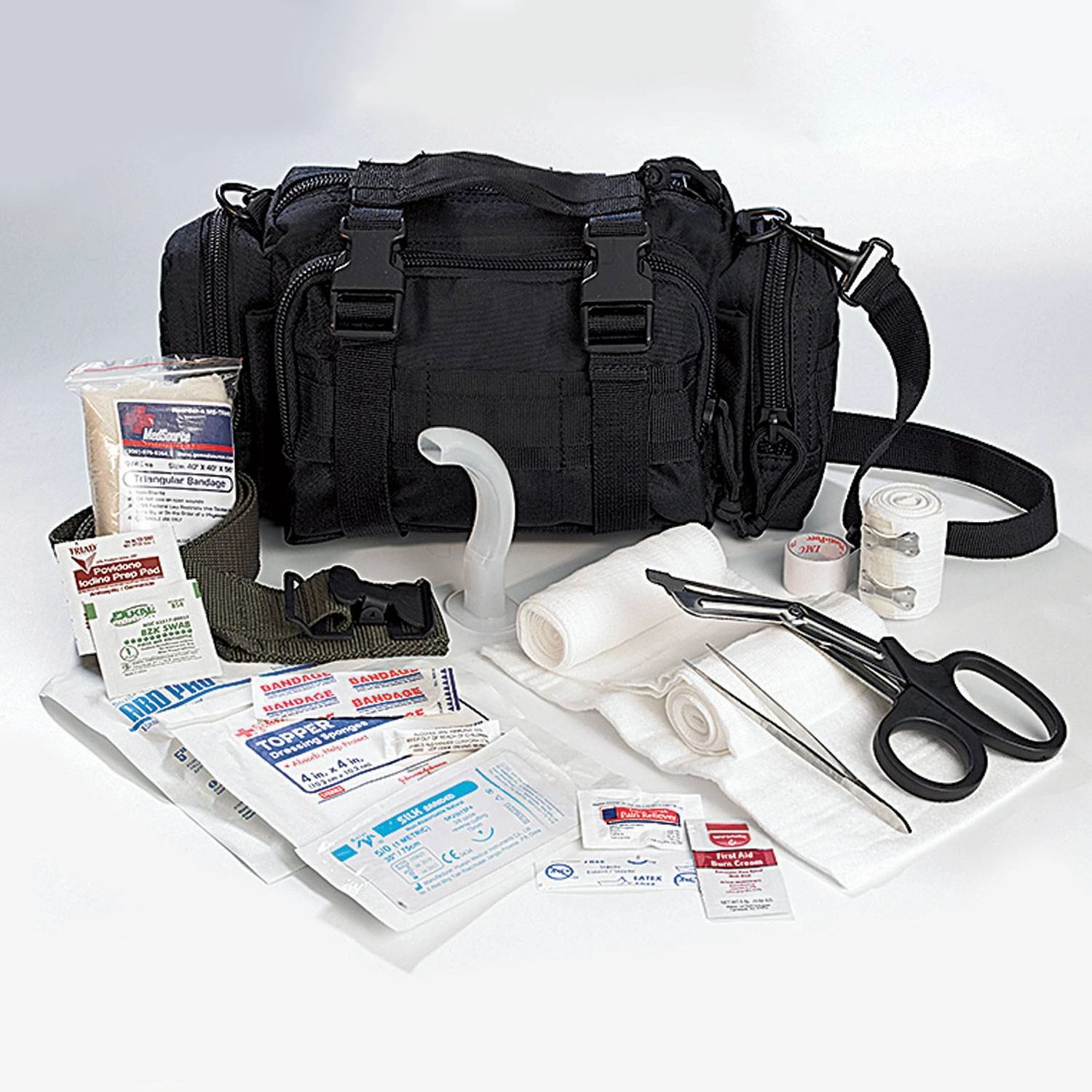 The Elite First Aid Rapid Response First Aid Bag is custom designed by the request of elite military units desiring a more compact and light kit for their daily field operations. This military first aid kit comes with easy-to-use MOLLE straps with snaps at one end to fit a belt up to 5″ wide or other MOLLE-compatible gear. The bag is lightweight and features multiple compartments for organizing your first aid supplies.