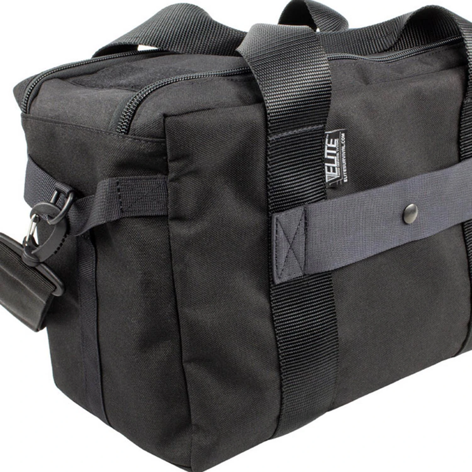 Built-tough and ready for action, the Elite Survival Systems Elite Range Bag features a large, padded main compartment with a lift out inner tote to give you easy access to your stored firearms. A large front zippered compartment with integrated mag storage keeps your extra ammo secure, while strategically placed loop and MOLLE panels enable limitless customization. With heavy-duty construction and YKK hardware, the Elite Range Bag delivers exceptional performance you can count on. Available in two sizes.