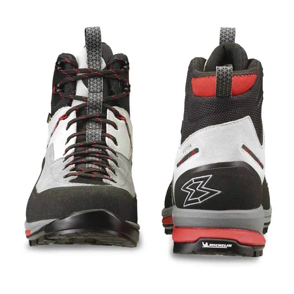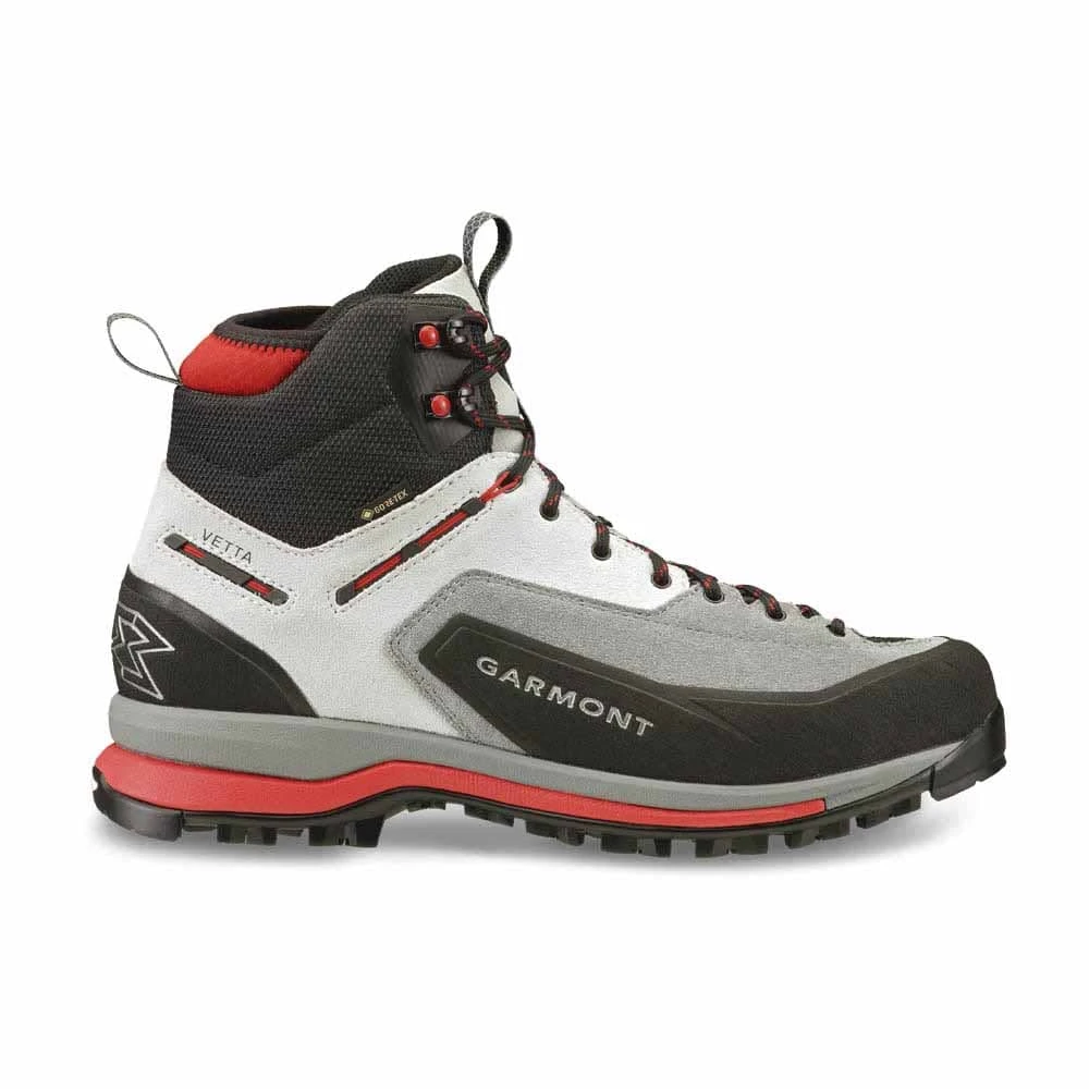 The Garmont Vetta Tech GTX Hiking Boots are high-top mountain boots with Gore-Tex Extended Comfort waterproof capabilities built for iron ways and hikes on mixed terrain and rock faces. This tactical hiking shoe has a 1.6 mm suede leather upper and is lightweight at 540 grams per shoe. These shoes feature Garmont’s Anatomically Directed Design (a.d.d.) which enables your foot’s natural ability to stabilize, absorb shock, and propel forward. Precision lacing follows the curve of the foot to allow the shoe to properly flex. An anatomical tongue is wider, and the upper cuff is lowered on the outside to improve stability and comfort. Washable Ortholite insoles provide long-term cushioning, moisture management, and high-level breathability. Michelin Offroad outsoles improve traction and adaptability without sacrificing flexibility. Additionally, Garmont Vetta Tech GTX boots fit perfectly with a heel locking system.