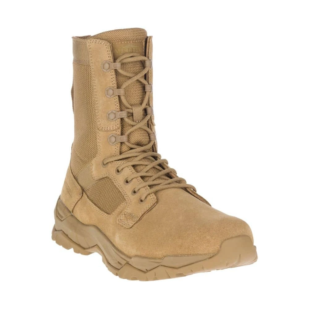 When the mission takes you into harsh winter climates, be prepared for anything with Merrell MQC 2 Thermo GTX Boots. These tactical boots feature 400 grams of over-the-toe Primaloft. Aerogel that traps heat to keep you warm in frigid temperatures. A durable waterproof suede upper and genuine GORE-TEX membrane protects against rain, snow, and mud, while a COMFORTBASE™ insole and lightweight EVA foam midsole deliver all-day comfort. With a sticky rubber outsole that can take on even the most unpredictable surfaces, these waterproof boots will keep you on your feet no matter what challenges lie ahead.