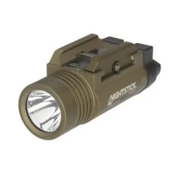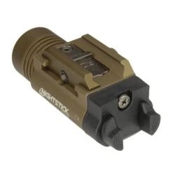 The Nightstick Tactical Weapon-Mounted Light provides a 1,200-lumen blast of light with a 245-meter beam distance and 1.75-hour runtime. This weapon light is optimized for threat identification, target discrimination and has a clearly defined halo for peripheral illumination in CQB situations. The single-motion ambidextrous switch activates the momentary-on and constant-on lighting modes. There’s also a user-selectable strobe and battery safe mode that can be enable or disabled with two unique, simultaneous switch actions. What’s more, this pistol light is constructed from anodized aircraft-grade 6061-T6 aluminum with a glass-filled nylon polymer door for maximum ruggedness.