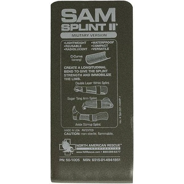 Suffering a fracture when you’re serving in the field is not only painful, but it also makes every aspect of your job more difficult. Make a tough situation more bearable with the right med equipment, provide an effective response with the North American Rescue SAM Splint II. This malleable splint is designed to easily be molded in order to fit nearly any fracture. It features lightweight, waterproof construction and is virtually impervious to extreme temperatures and other common environmental challenges. The SAM Splint II is also reusable and offers easy cleaning, making it an outstanding value. Illustrated step-by-step instructions are included to facilitate easy use in a tight situation, and the splint’s radiolucent nature allows for x-rays without removal if necessary.