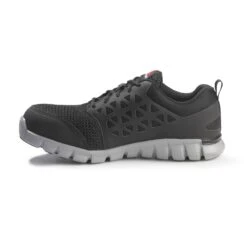 Alloy Toe meets ASTM F2413 Safety Standards, Electrical Hazard Protection. Reebok Men’s Sublite Cushion Work Shoes achieve maximum lightness and flexibility in a work shoe. With deep flex grooves, the SubLite foam midsole reduces weight and allows for greater range of motion. Rubber pads provide traction at heel strike and forefoot takeoff while minimizing weight. Mesh uppers allow for ultimate breathability and moisture transfer for all day cooling comfort. A MemoryTech Massage footbed adapts to the unique contours of your foot.