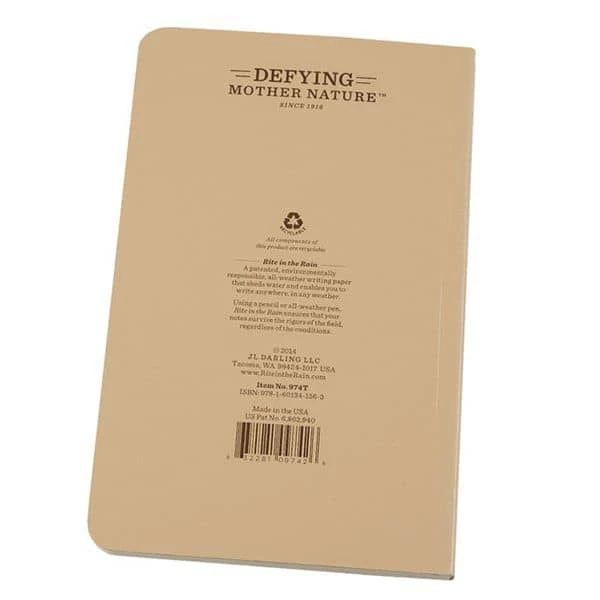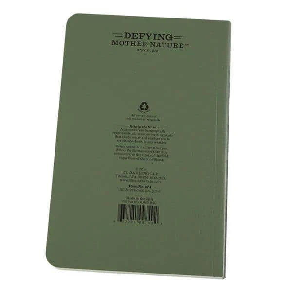 All Rite in the Rain products are designed to stand up against a number of extreme weather conditions. Rain and other inhospitable environments can ruin all the notes you made on a given day, but the paper in the Rite in the Rain field book was designed to be waterproof. You will not have to worry about your notes becoming damaged, no matter what the weather is like. Rite in the Rain also has a strong commitment to sustainability, and all items are able to be recycled.