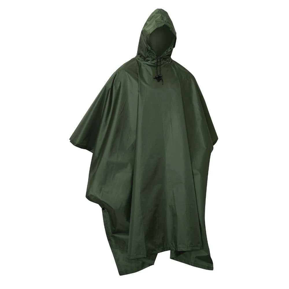 The Rothco GI Rip-Stop Military Poncho is made from heavy duty waterproof material designed with movement in mind. Snap closures provide a perfect fit, while grommets in each corner allow this poncho to double as a shelter.