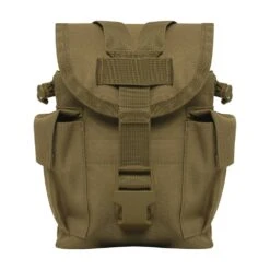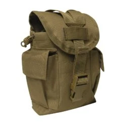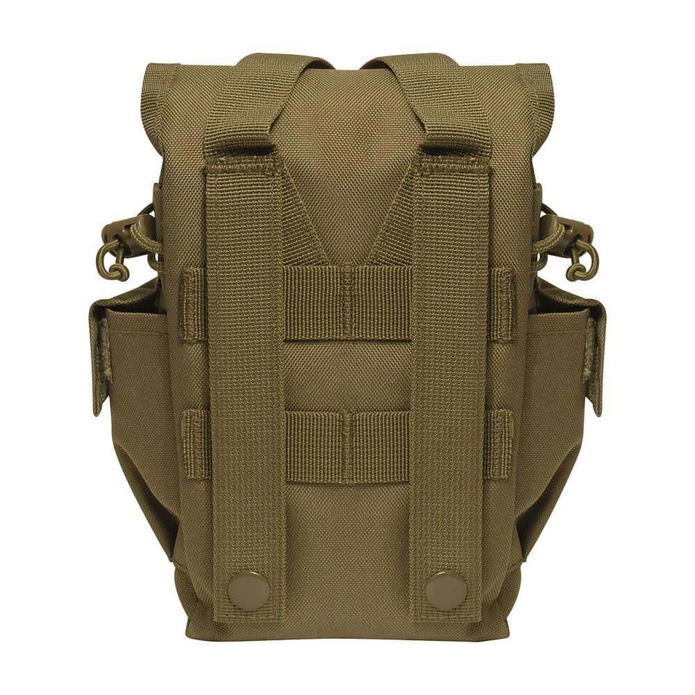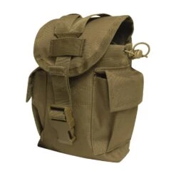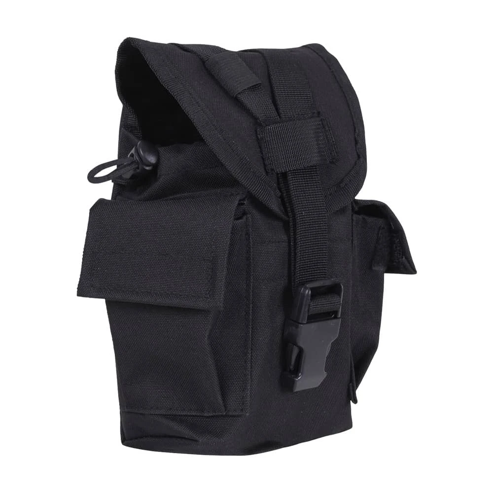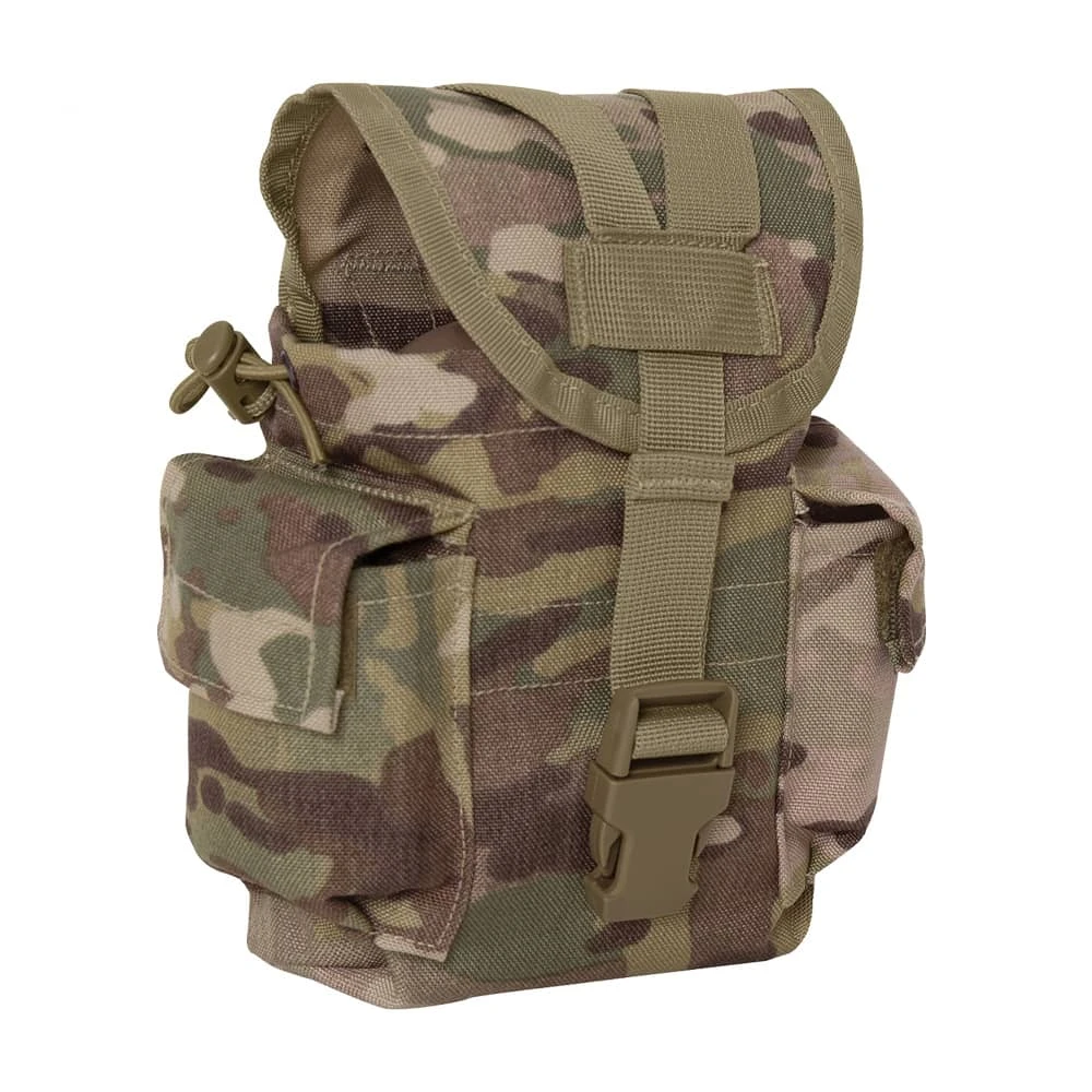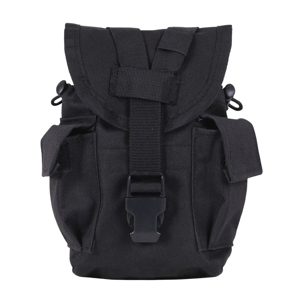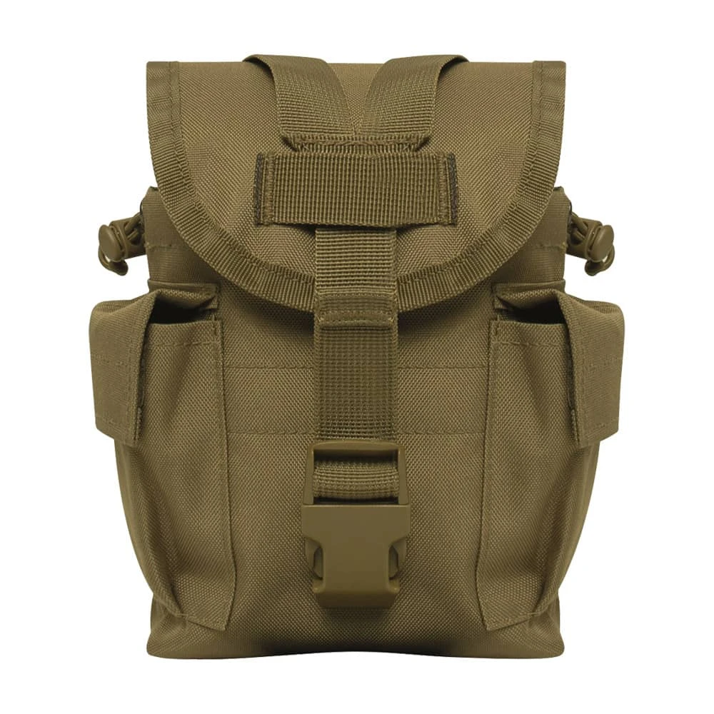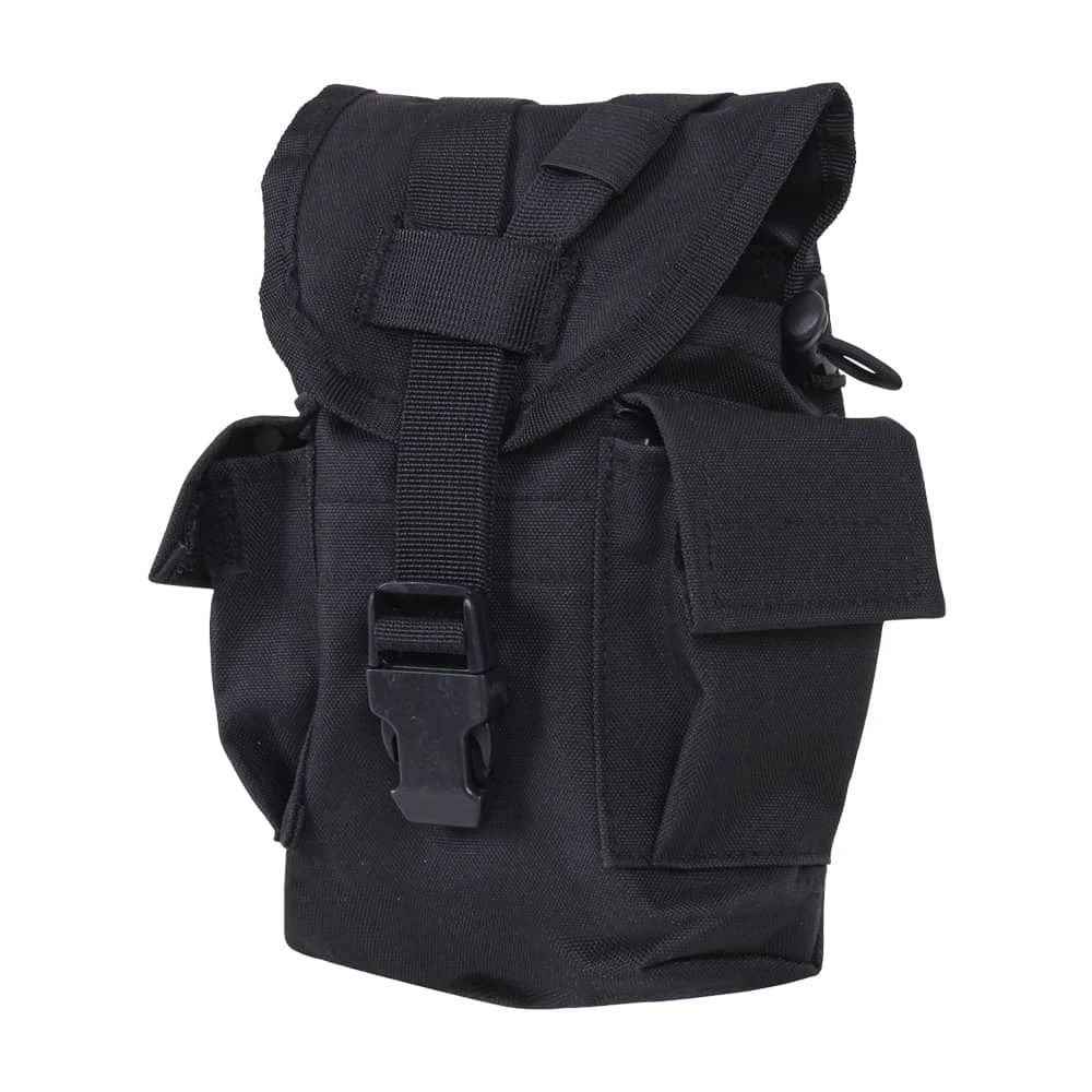 Easily carry and access your canteen and other essentials with the Rothco MOLLE II Canteen & Utility Pouch. This multi-purpose tactical MOLLE pouch securely holds a 1-quart canteen in the main compartment, with two additional utility pockets on the sides for any other small military supplies you can fit. Attach this versatile canteen pouch to your MOLLE compatible packs or vests using dual MOLLE straps. A quick release buckle y-strap system keeps the pouchUs flap cover closed tight, while adjustable drawstring closures hold your canteen in place. Carry MOLLE canteen pouch by attaching to one of our tactical vets or backpacks.