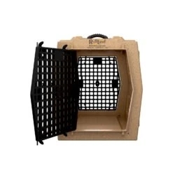 Keep your dog safe and secure while inside your vehicle with the Ruff Land Kennels Intermediate Kennel, Double Door, Front and Back. This rugged dog kennel features two doors that allow you to load and unload your canine from the front or back of the kennel. Ruff FLEX technology that absorbs impact, while the UpSide™ raised floor keeps the inside of the kennel free of flying debris.