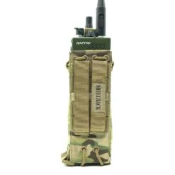 The Shellback Tactical Adjustable MBITR Pouch is designed to fit the two most common military radios: Thales PRC-148 and Harris PRC-152 Falcon III MBITR radios. This MBITR radio pouch is designed to be worn with MBITR radio controls facing the operator and can easily attach to your kit with two self locking webbing straps. With the release of one buckle, the pouch quickly folds out and allows quick access to radio control buttons. Pouch includes an easy access flap at the bottom which allows operators to quickly change radio batteries without removing the entire radio.