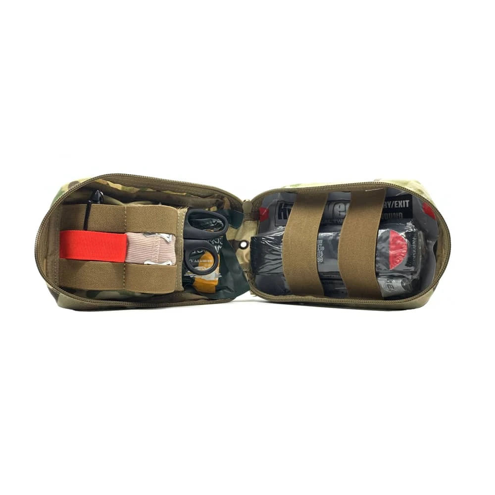 - Main pocket has multiple elastic bands to secure tourniquets, compression bandages, EMT sheers and quikclot