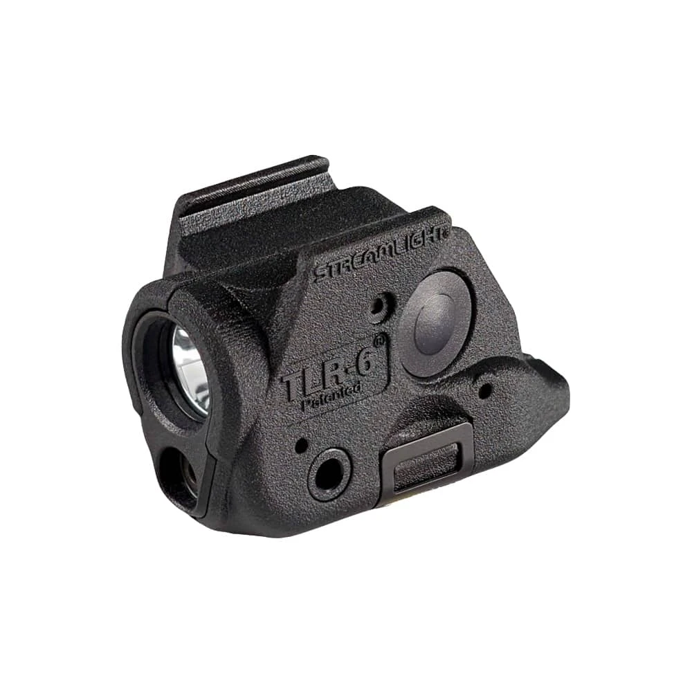 An industry first, the ultra-compact Streamlight TLR-6 Weapon Light for GLOCK 43X/48 MOS and GLOCK 43X/48 RAIL is powered by 2 CR-1/3 coin batteries (included) that can be accessed and replaced without using tools. This tactical light features a white 100 lumen LED and integrated red aiming laser that helps improve accuracy.