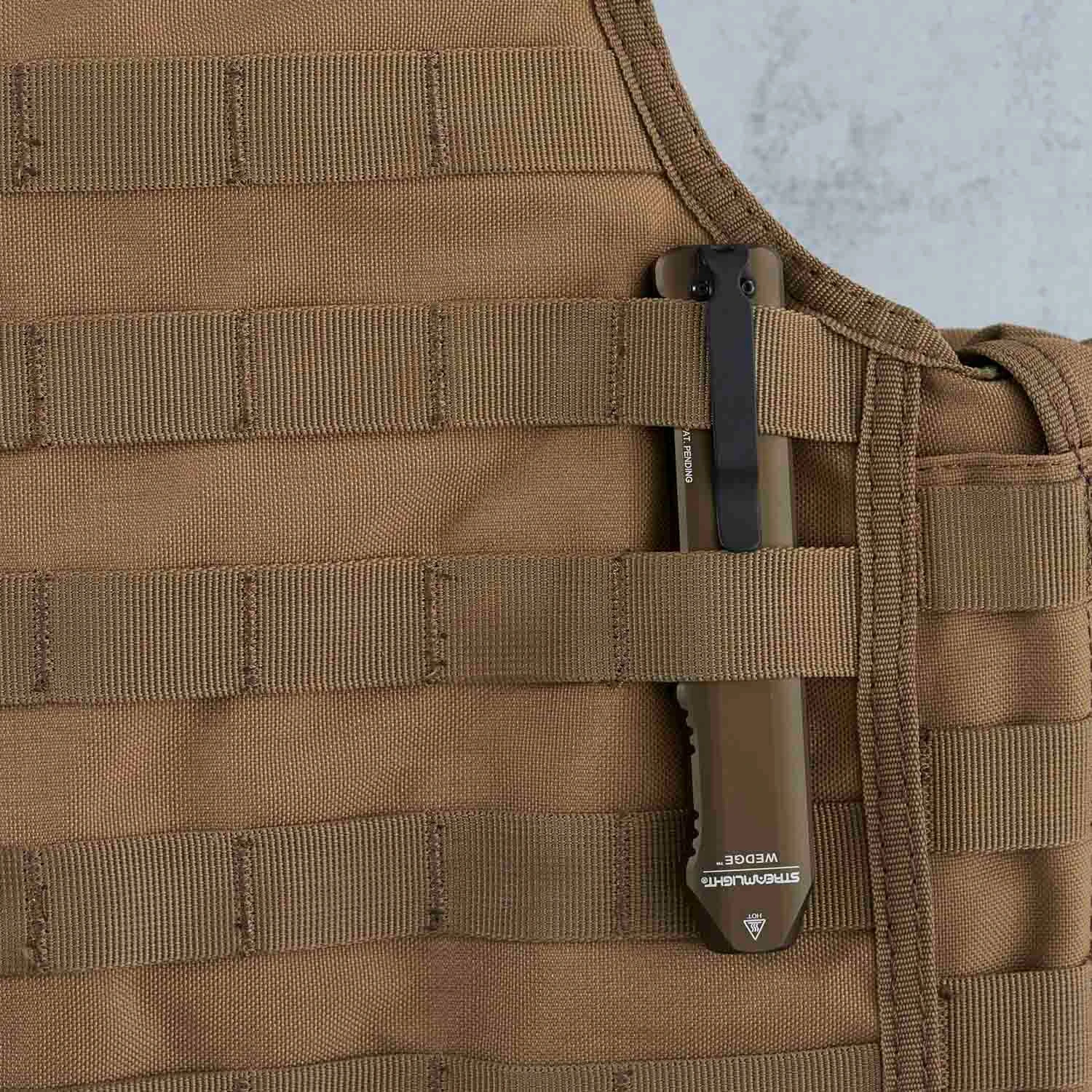 The Streamlight Slim Wedge is a compact, high-performance that’s made for a clean pocket carry. This pocket flashlight features an ergonomic design that fits comfortably in your hand and has an intuitive thumb switch that gives you tactile control over the constant-on and THRO™ (Temporarily Heightened Regulated Output) modes. The body itself is made from rugged anodized aluminum with a waterproof USB-C charger port and has been tested for impact resistance up to 1 meter for a balance of durability and performance.