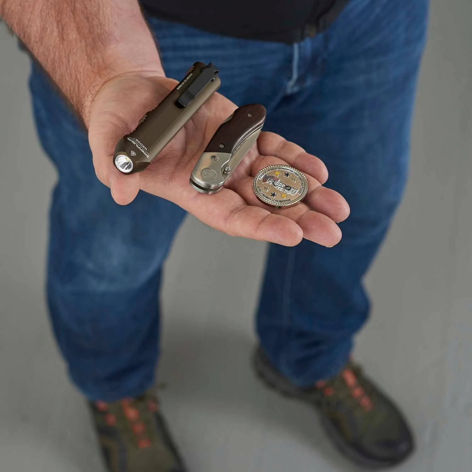 - Thin, ergonomic design fits comfortably in your hand and provides clean pocket carry