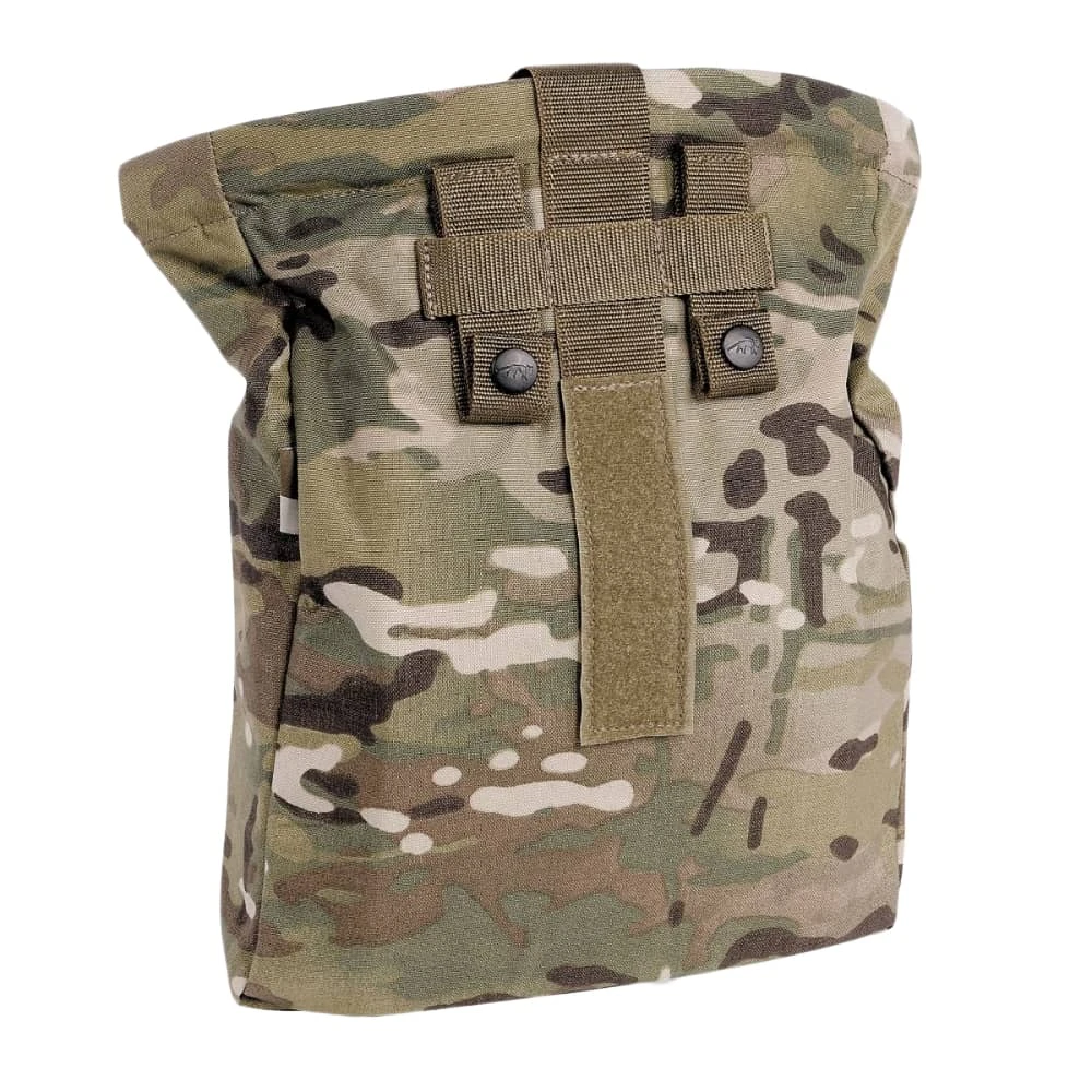 Quickly and easily stow your mission-essential items with the Tasmanian Tiger Dump Pouch. This multipurpose tactical bag is made from durable nylon that folds flat for easy storage. An open top design with hook and loop strap closure enables one-handed operation, while MOLLE loops can be securely attached to plate carriers, tactical vests, rucksacks, and more.