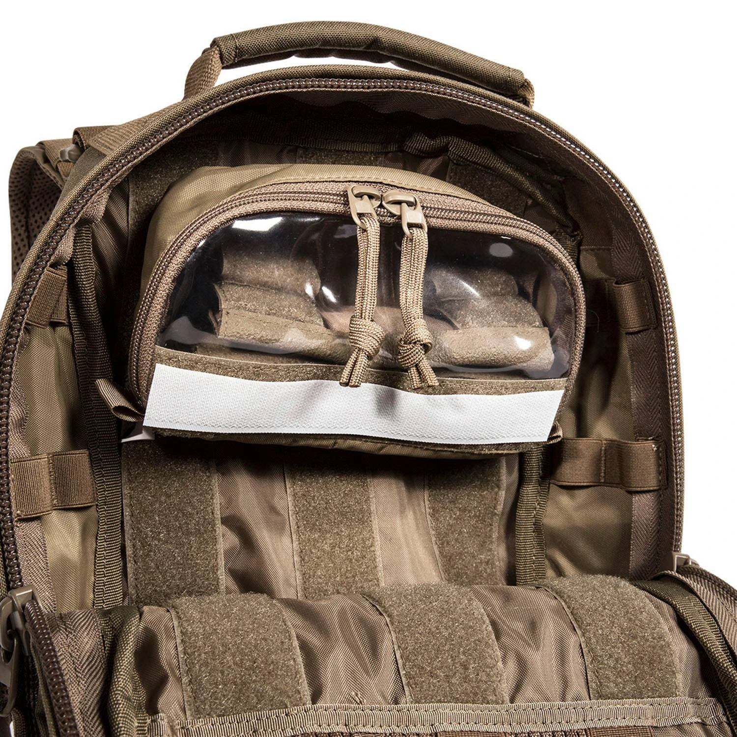 The Tasmanian Tiger Medic Assault Pack MKII S is a small, flat medic bag with a laid-out interior for practical organization. This medical backpack features laser-cut MOLLE on the front and sides for additional attachments and includes two removable panels with adjustable bungee cords. The webbing is adaptable with Tasmanian Tiger plate carriers, and the length of the stowable shoulder straps makes it possible to carry large body armor. Additionally, this medical bag has visual markers and multiple fixation points to make it quick and easy to find your equipment.