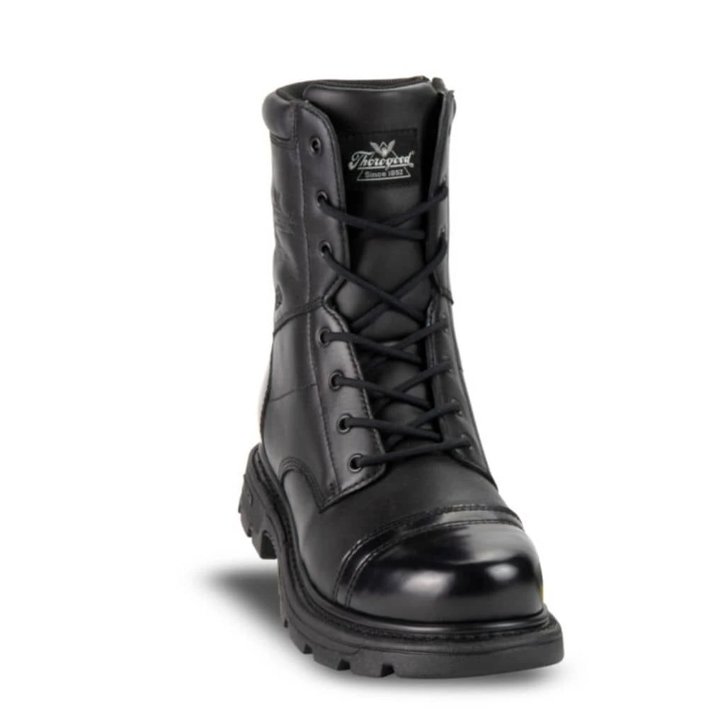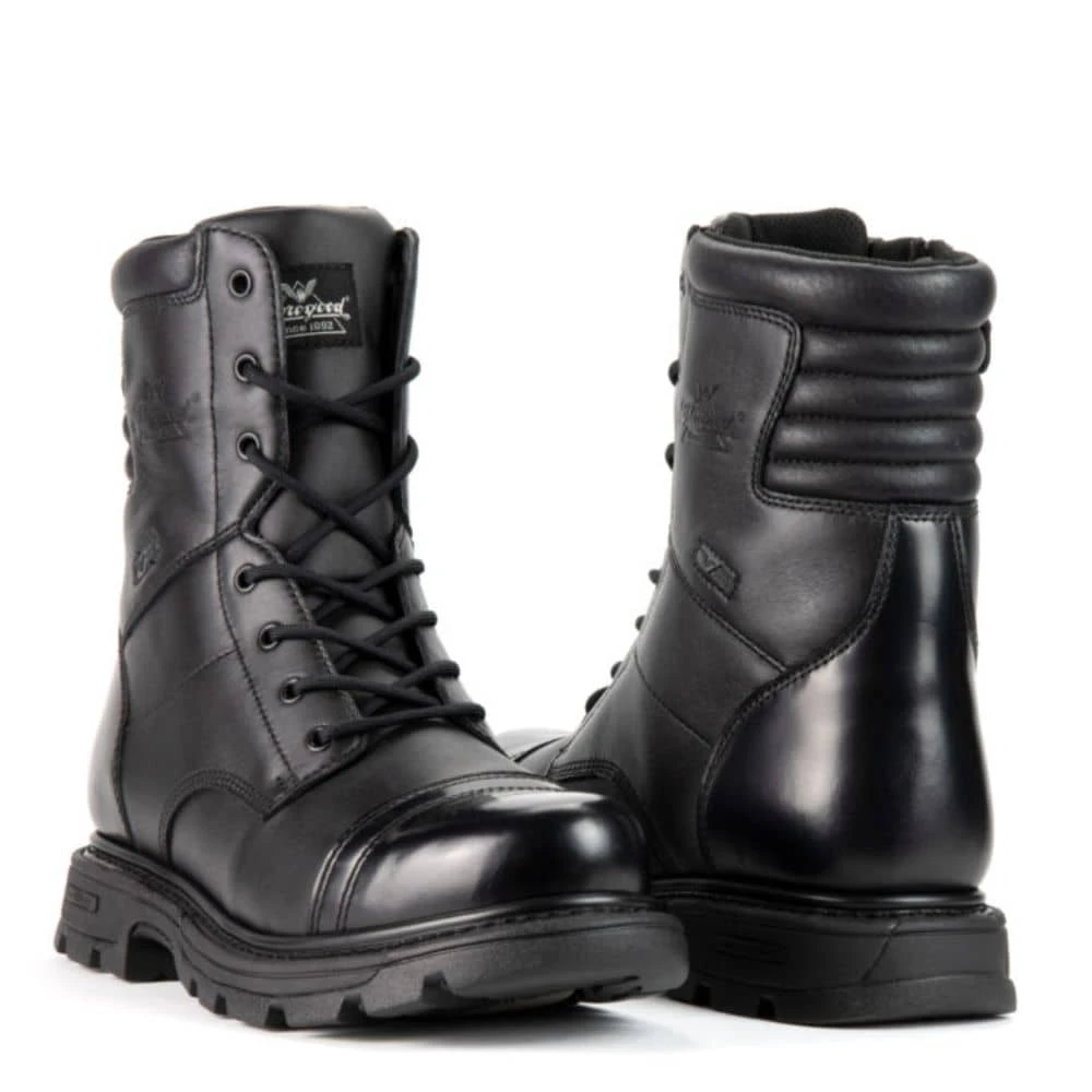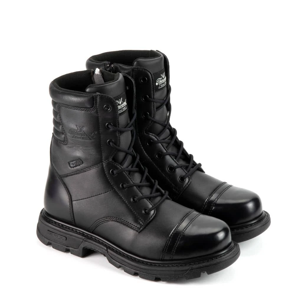 Airborne operatives need gear that holds up under the most demanding conditions, a fact not lost on Thorogood Shoes. Designed specifically to deliver ample protection for paratroopers, few products can compare with the Thorogood Black 8 Inch GEN-flex2 Side Zip Jump Boot. Featuring Goodyear storm welt construction and a dual-density GEN-flex2 rubber outsole, these Thorogood boots are as strong as the day is long. Optimal comfort and cushioning is provided by compression-molded EVA midsole, removable polyurethane footbed, and Impact 300 gel insert positioned at the heel. An engineered composite shank provides added protection while authentic heavy-duty YKK zipper hardware ensures reliable performance. Finally, the polishable high-shine toe cap and heel counter make it easy to keep your black leather jump boots looking sharp every day.