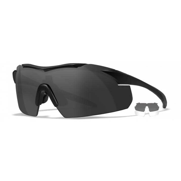 Purpose-built for superior protection from projectiles, the Wiley X WX Vapor Tactical Sunglasses provides front and side protection while maintaining distortion-free visual clarity. These Mil-Spec ballistic sunglasses have a durable black frame and adjustable nose piece that accommodates various face shapes. Shatterproof Selenite polycarbonate lenses block 100% UV radiation and utilize T-Shell technology to prevent scratches. With three included lens sets that allow you to adapt to ever-changing environments, this tactical sunglasses system delivers unbeatable performance that you can count on.